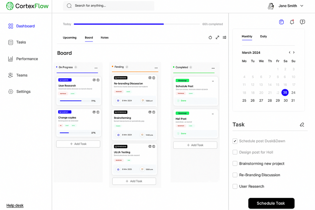 CortexFlow has completely streamlined our sprint planning. The AI suggestions for task prioritization save us hours every week